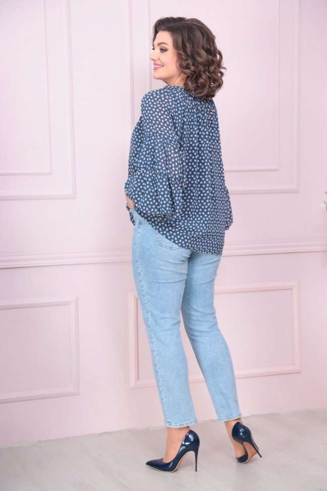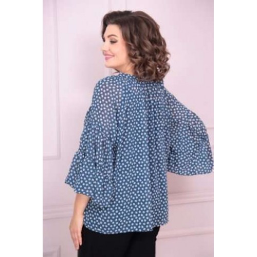 Комплект женский двухпредметный состоит из топа на бретелях и очень нарядной блузки из тонкого шифона с купоном. Основным украшением блузки служит рукав. Рукав состоит из трех частей. Верхняя часть рукава реглан, по средней части рукава идет два фигурных подреза со сборкой. Заканчивается рукав резинкой. Блуза свободного кроя. Горловина-стойка. По переду обработан разрез и завязывается на завязку. Длина рукава от горловины в 48р-71см. От бокового шва-54см, длина блузы в 48р-64см. 48 Обхват бюста - 96см, Обхват талии - 76-80см, Обхват бёдер - 104см. 50 Обхват бюста - 100см, Обхват талии - 80-84см, Обхват бёдер - 108см. 52 Обхват бюста - 104см, Обхват талии - 84-88см, Обхват бёдер - 112см. 54 Обхват бюста - 108см, Обхват талии - 88-92см, Обхват бёдер - 116см. 56 Обхват бюста - 112см, Обхват талии - 92-96см, Обхват бёдер - 120см. 58 Обхват бюста - 116см, Обхват талии - 96-100см, Обхват бёдер - 124см