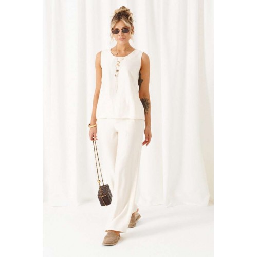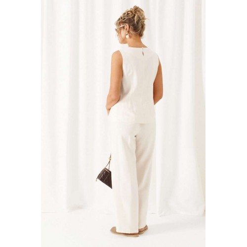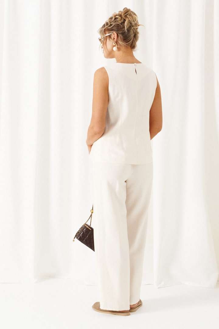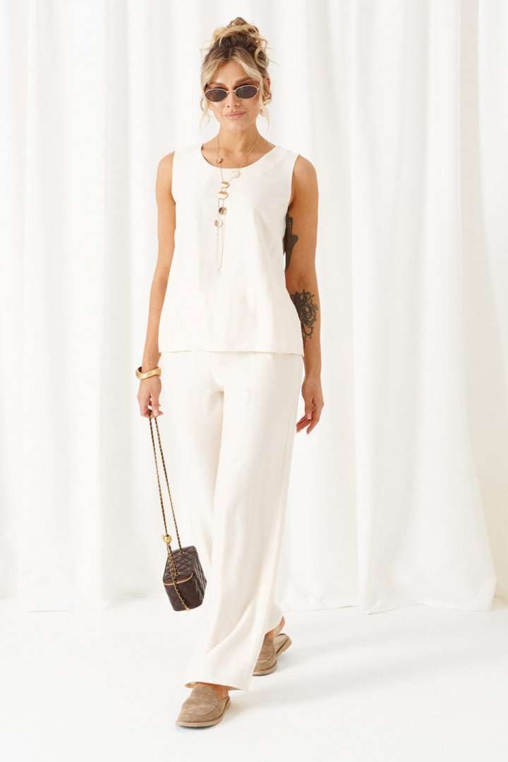 Состав: топ, брюки – лен 80%, вискоза 20%, жакет – вискоза 70%, хлопок 30%
