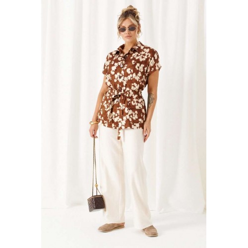 Женский льняной костюм из смесовой ткани с натуральным составом, акцентные накладные карманы и безупречные любимые оттенки. Созданный в расслабленном крое с подчеркнутыми деталями, костюм позволит чувствовать себя комфортно и непринужденно. Стильный костюм состоит из жакета-блузки, топа и брюк, выполнен из мягкой ткани с волокнами льна и вискозы, практичен в носке. Жакет свободного силуэта, удлиненный с кулисой и пояском-завязкой. Передняя часть из двух половинок, с нагрудными вытачками от бокового шва и накладными нижними функциональными карманами с клапанами. Спинка разрезная со средним швом. Воротник классический стояче-отложной на отрезной стойке. Линия плеча удлиненная, спущенная, переходящая в цельнокроеный рукав. Застежка центральная на петли и пуговицы. Низ прямой. Брюки длинные, прямые свободные. Посадка стандартная, крой классический. Пояс притачной, шириной 4см с эластичной тесьмой по кругу. Топ полуприлегающего силуэта. Перед цельный, с двумя нагрудными вытачками от бокового шва. Спинка со средним швом, оформленным у горловины разрезом с фиксацией на навесную петлю и пуговицу. Горловина округлой формы. длина топа (по среднему шву спинки) ~ 62 см. длина жакета (по среднему шву спинки) ~ 72 см. длина брюк (по боковому шву с поясом) ~ 108 см.