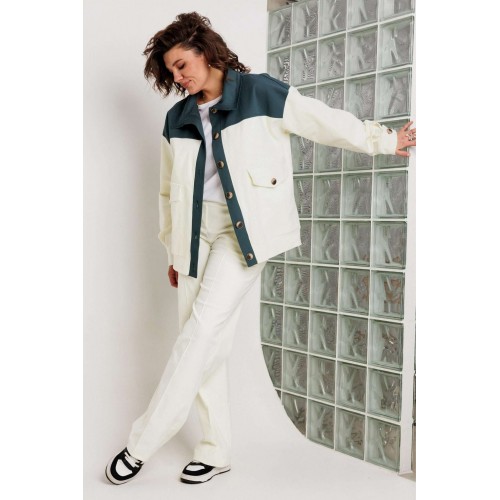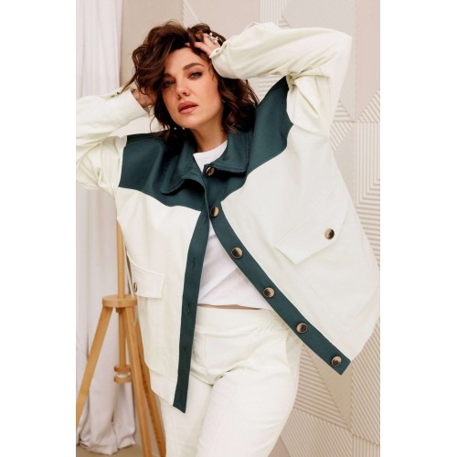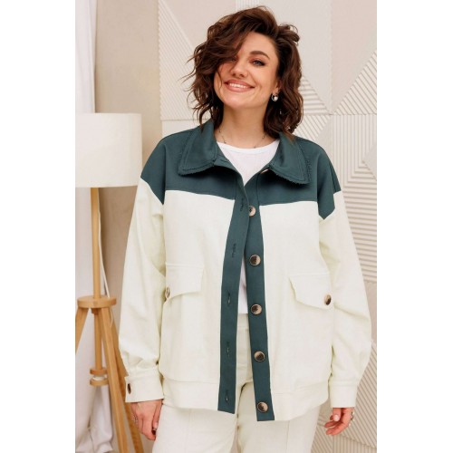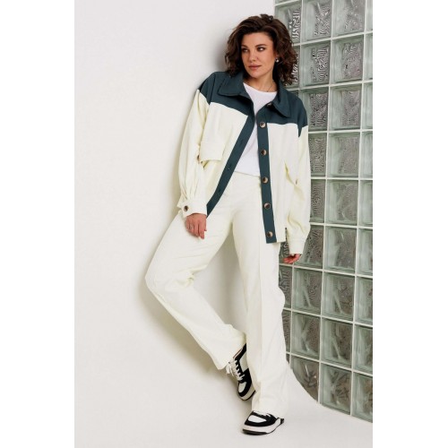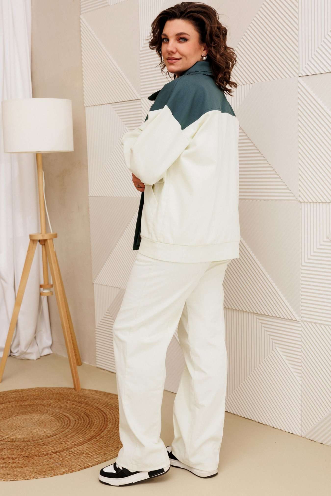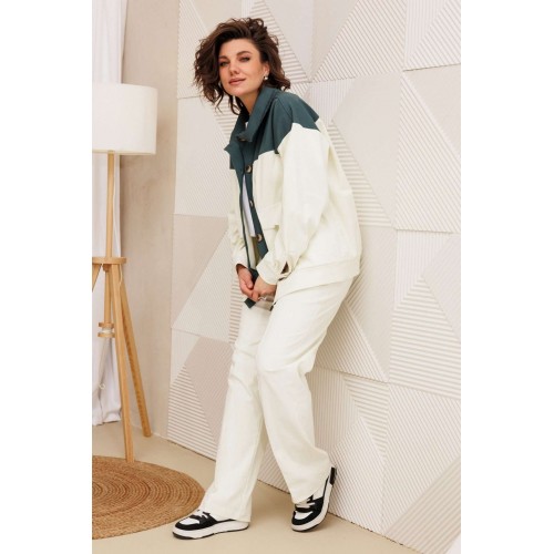 Бомбер свободного кроя. Представляет собой стильное и универсальное сочетание для создания модного образа. Вельвета в рубчик с высоким содержанием хлопка добавляет нотку кэжуал-стиля и придаёт образу свежий и молодёжный вид. Бомбер выполнен в стиле Оверсайз, нормальной длины. Современная модель, притягивающая к себе интерес. Легко сочетается и подходит к разнообразным образам. Отлично подходит для носки вторым слоем. Контрастные детали кокетки, воротника и планки бомбера выполненные из джинсовой ткани - являются изюминкой модели, приковывают к себе внимание и являются стильным дополнением модели. Горловина полукруглой формы и обработана втачным воротником. Воротник имеет необработанный край. Функцию застёжки передней части, выполняют стильные пуговицы. Спинка состоит из нескольких разрезных деталей. Рукав втачной, со спущенной линией плеча и притачной манжетой, имеющей застёжку на пуговицу. По переду, снизу притачные объёмные карманы с клапаном и отрезной частью по диагонали. Бомбер легко дополнять любыми аксессуарами и сочетать с различной обувью. На фото представлены брюки бренда BegiModa арт. 6081