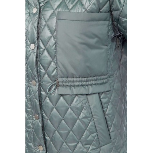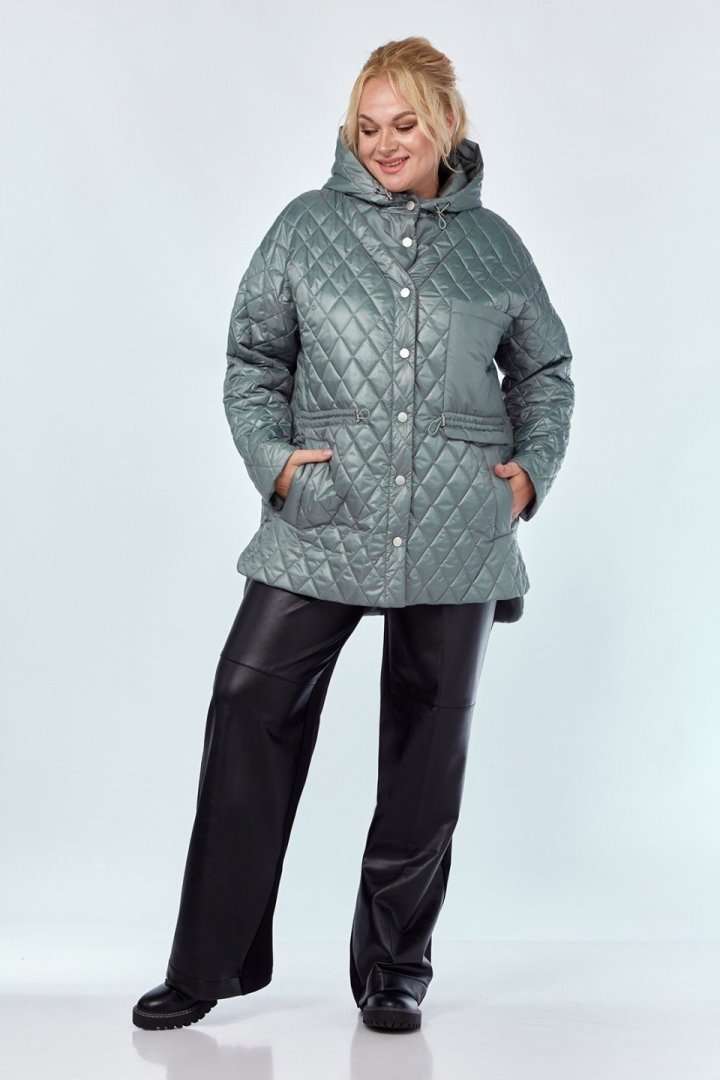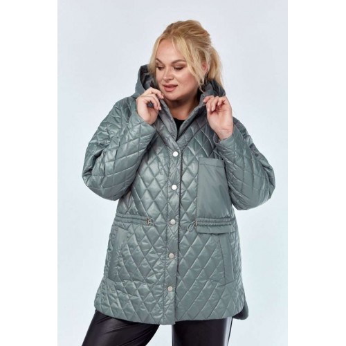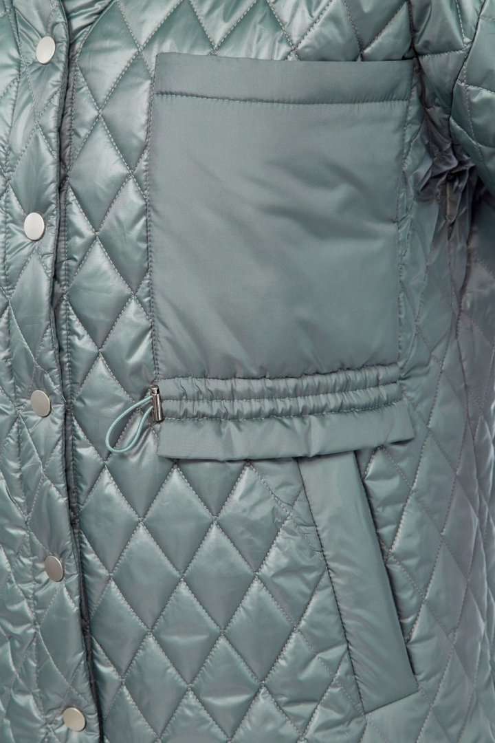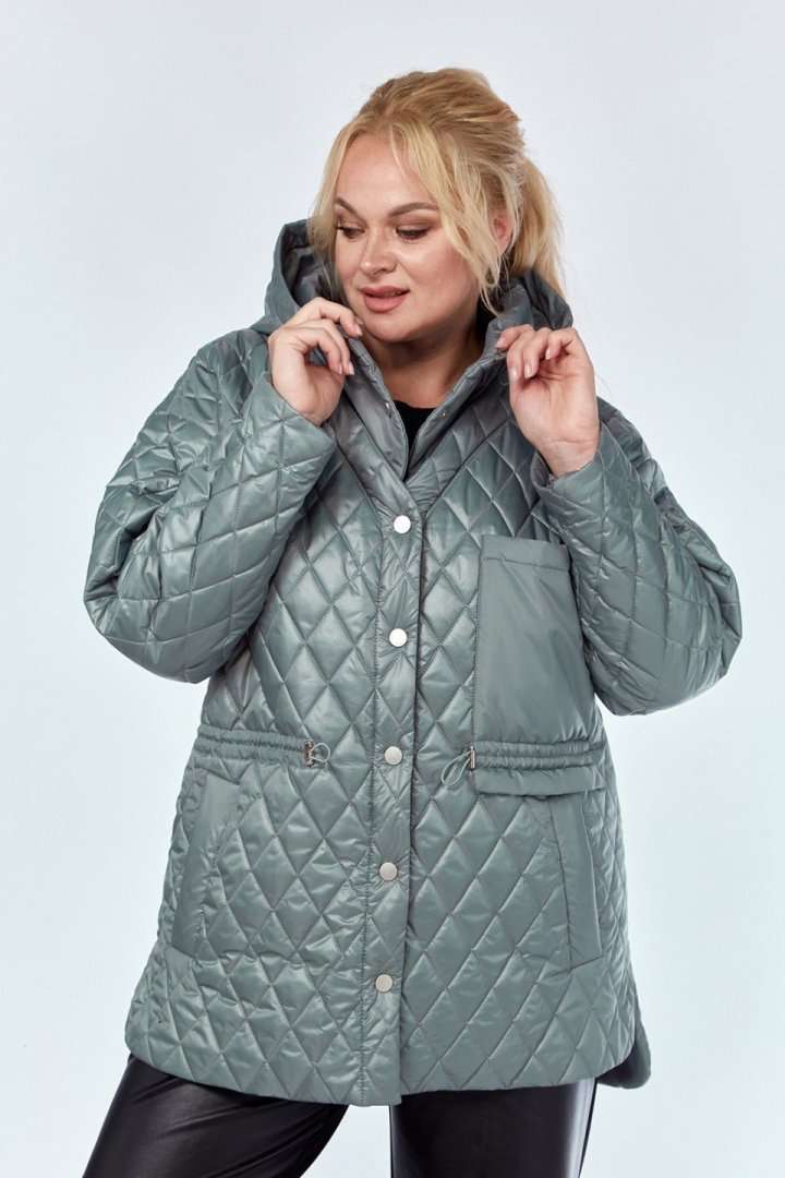 Куртка женская стеганная с капюшоном, утеплитель файбертек ( 100г/м², до -5°C ) свободного силуэта. Застежка центральная на пробивные кнопки. Полочка с фигурной вставкой из отделочной ткани, с накладным карманом и декоративными кулисами. Имеются прорезные карманы с листочкой. Спинка цельная. Рукава спущенные. Низ фигурной формы. Обращаем Ваше внимание, что цвет на экране может отличаться от реального.