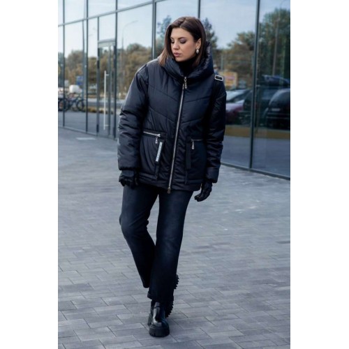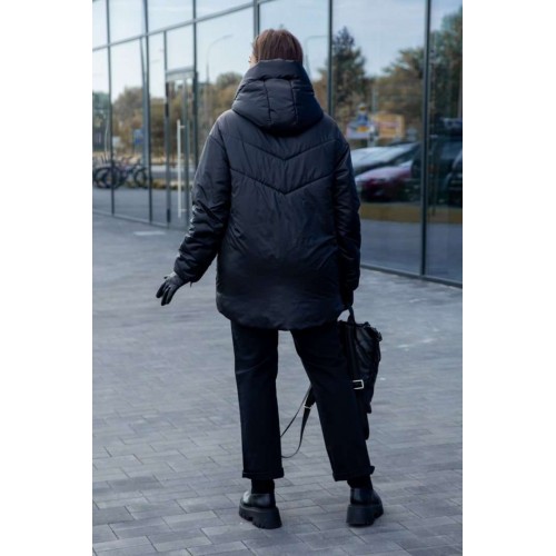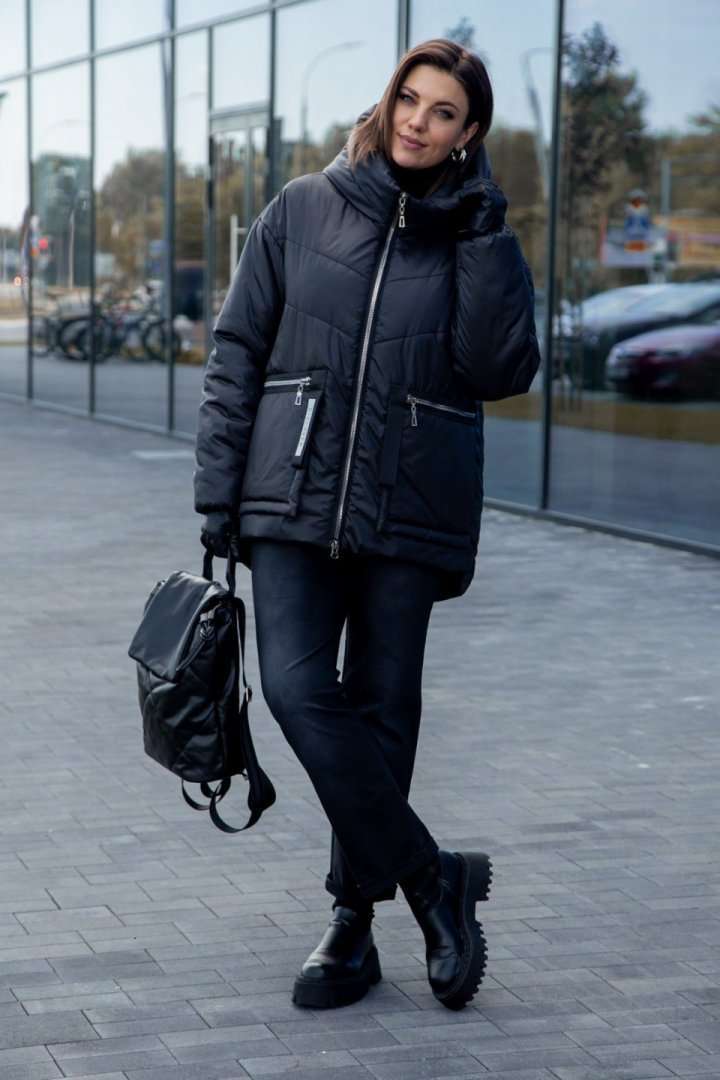 Очень эффектная зимняя куртка свободного силуэта с панюшоном на высокой стойке и накладными карманами с боковым входом на монии. Рукав втачной, низ куртки фигурный двухуровневый. Застежка молния. Утеплителе "FeelGood" 200 г./метр кв..Температурный режим от -10 до -20 градусов. длина изделия по спинке -83см длина изделия по полочке от горловины -61 см длина рукава от горловины-77см
