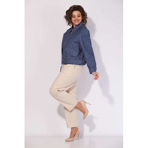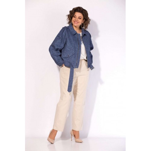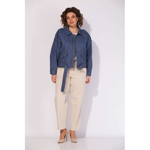 Элегантный джинсовый жакет, укороченный оверсайз с карманами — идеальный спутник в любом сезоне 2026! Этот легкий жакет премиум класса станет ключевой вещью вашего гардероба, сочетая в себе актуальные тренды и практичность. Модель силуэта оверсайз, с длинным свободным рукавом покроя реглан. Воротник отложной. Застежка центральная на молнию с дополнительной планкой. По полочке расположены прорезные карманы с клапаном. Рукав длинный, на притачной манжете с застежкой на пуговицу. Спинка с центральным швом, по низу заложены складки. По низу изделия, спереди расположен декоративный пояс с пряжкой для более комфортного прилегания. Модель на шелковой подкладке. Длина по спинке – 60 см, рукав – 62-63 см.