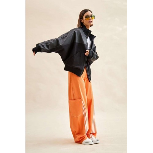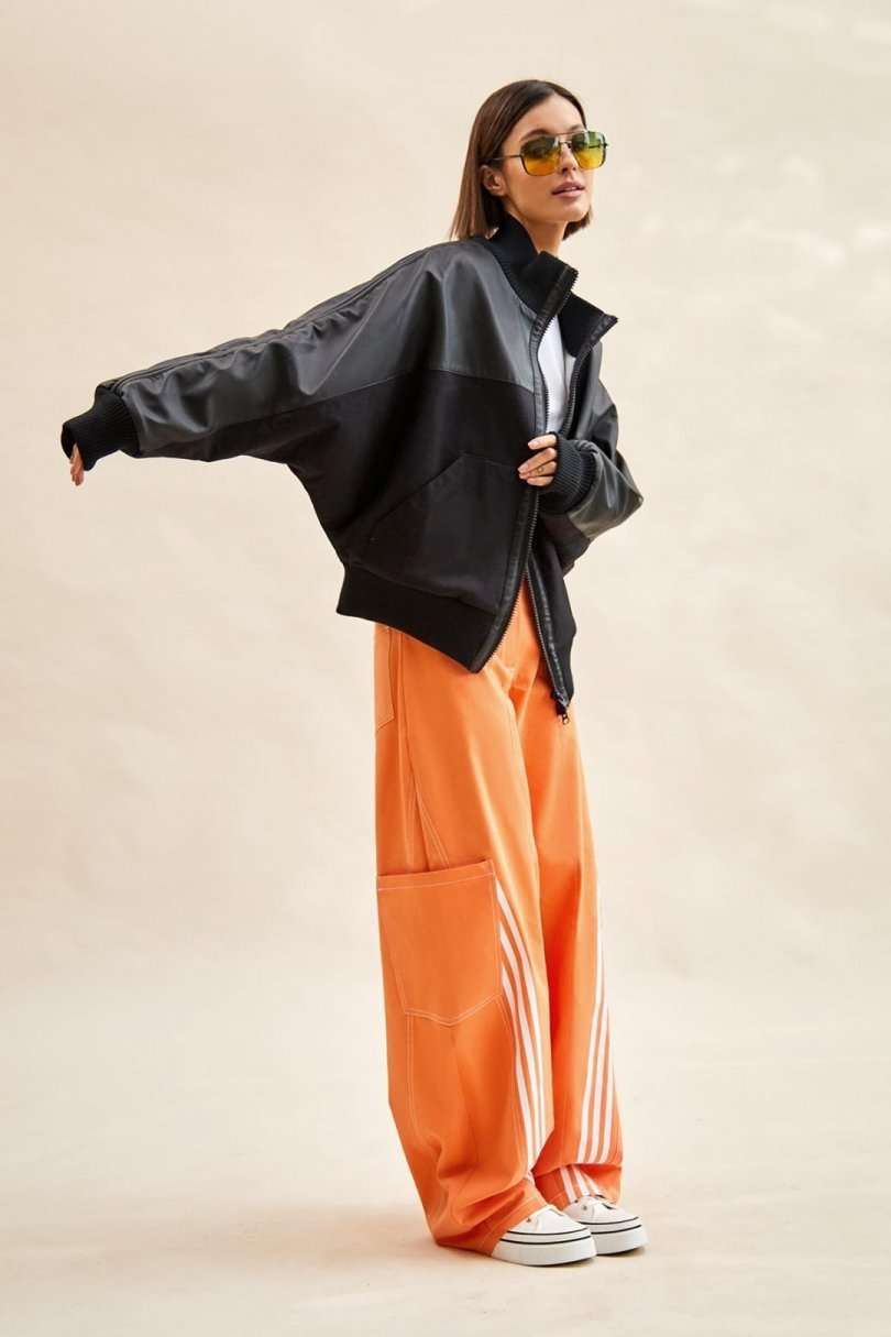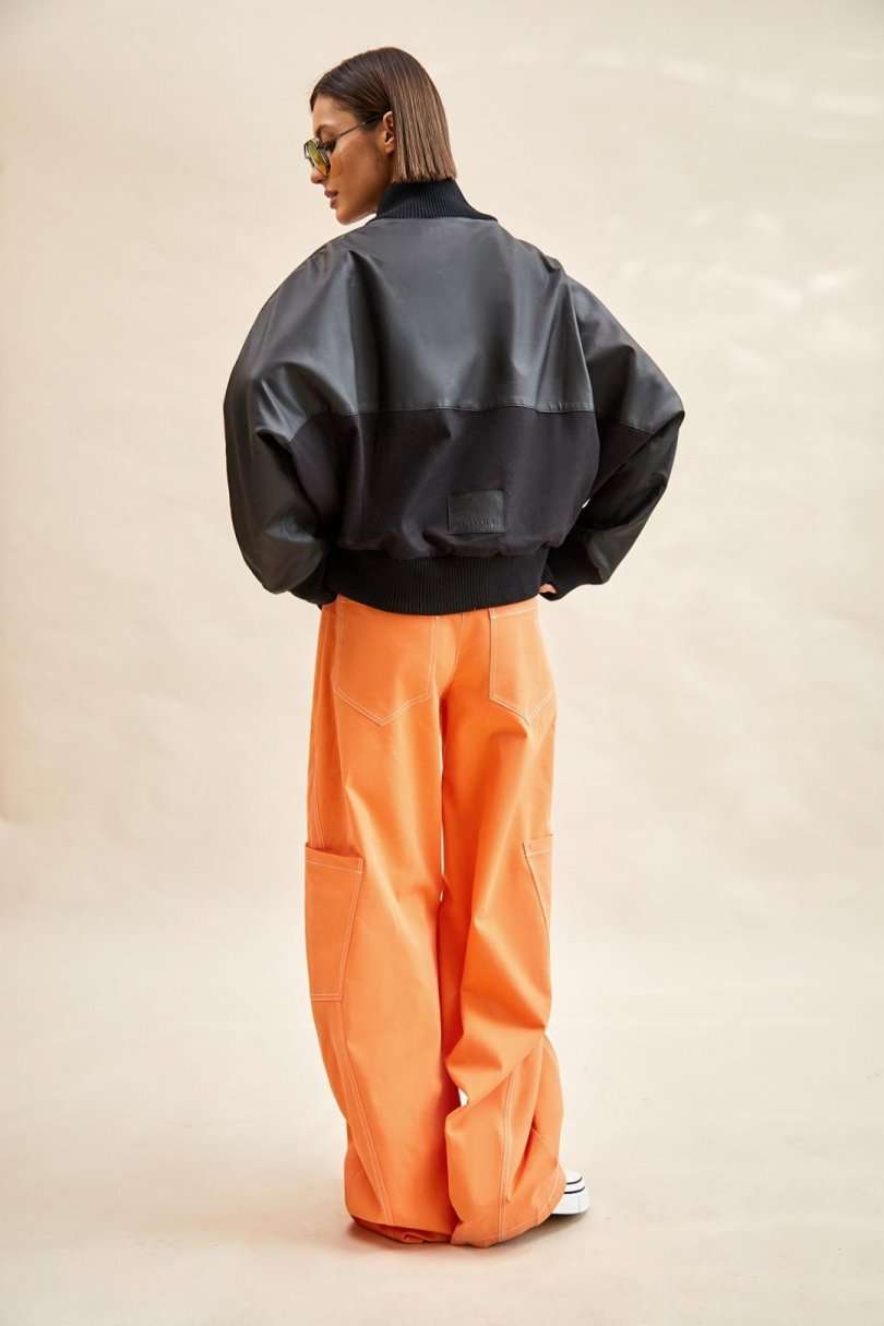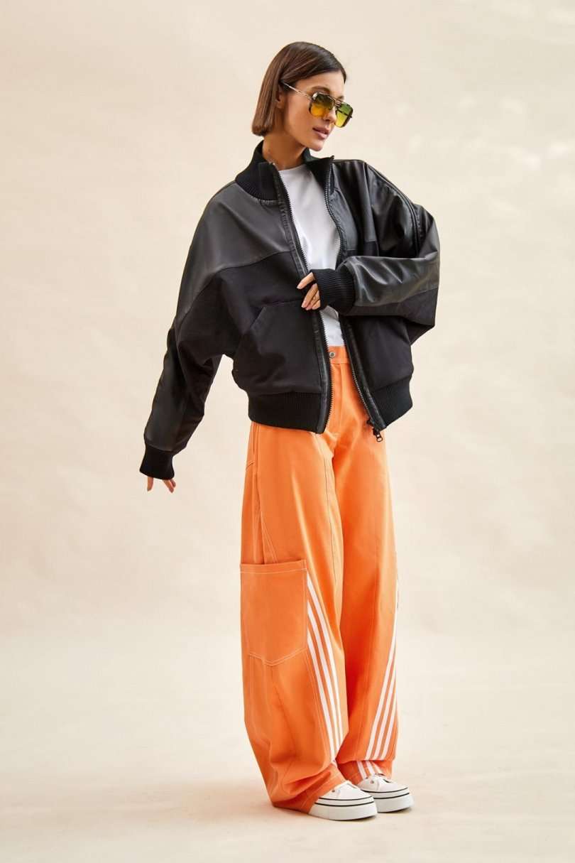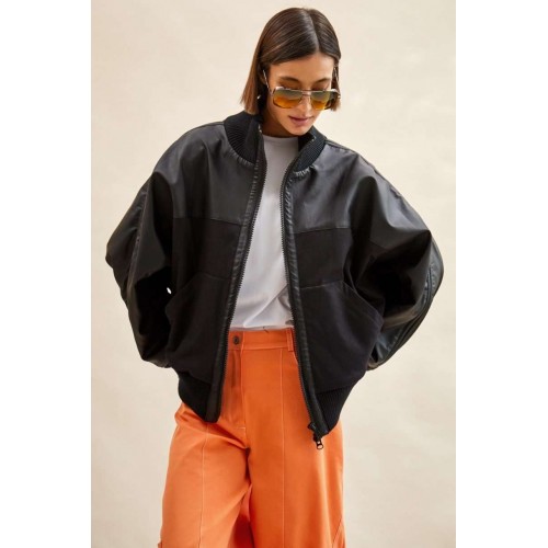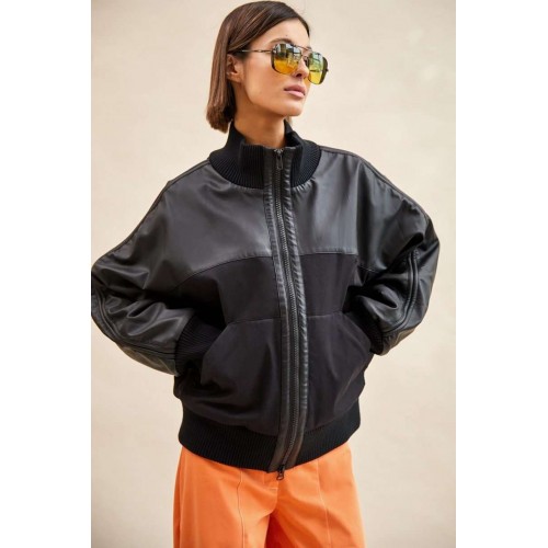 Куртка-бомбер: - О-силуэт; - на подкладке из флиса; - цельнокроеные рукава; - сзади с спереди кокетка из экокожи; - застежка спереди на молнию; - вставка по плечу со шнурами; - спереди накладные утепленные карманы; - воротник стойка из трикотажа; - по низу куртки и рукавов трикотажные манжеты в рубчик; - на спинке аппликация с логотипом.
