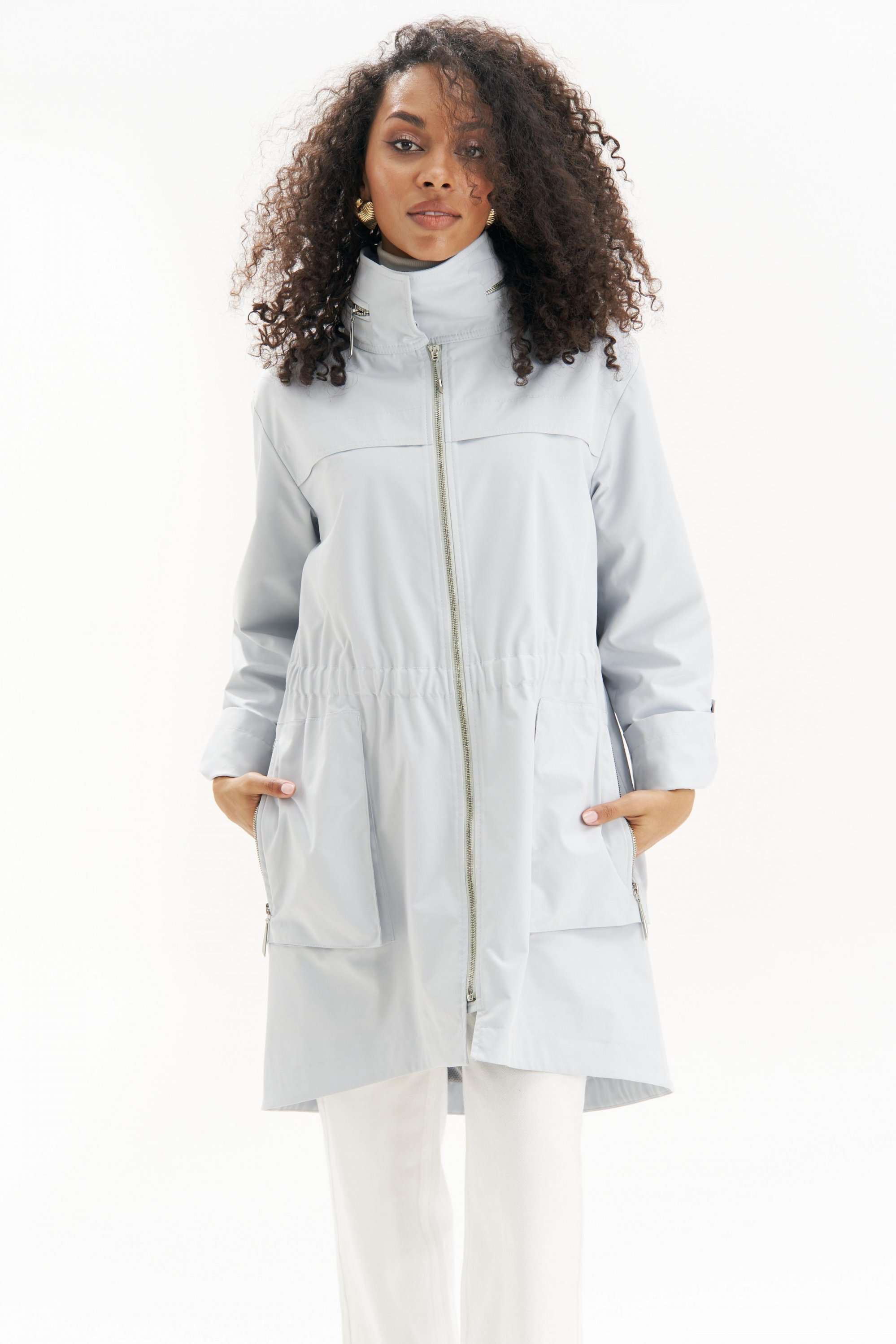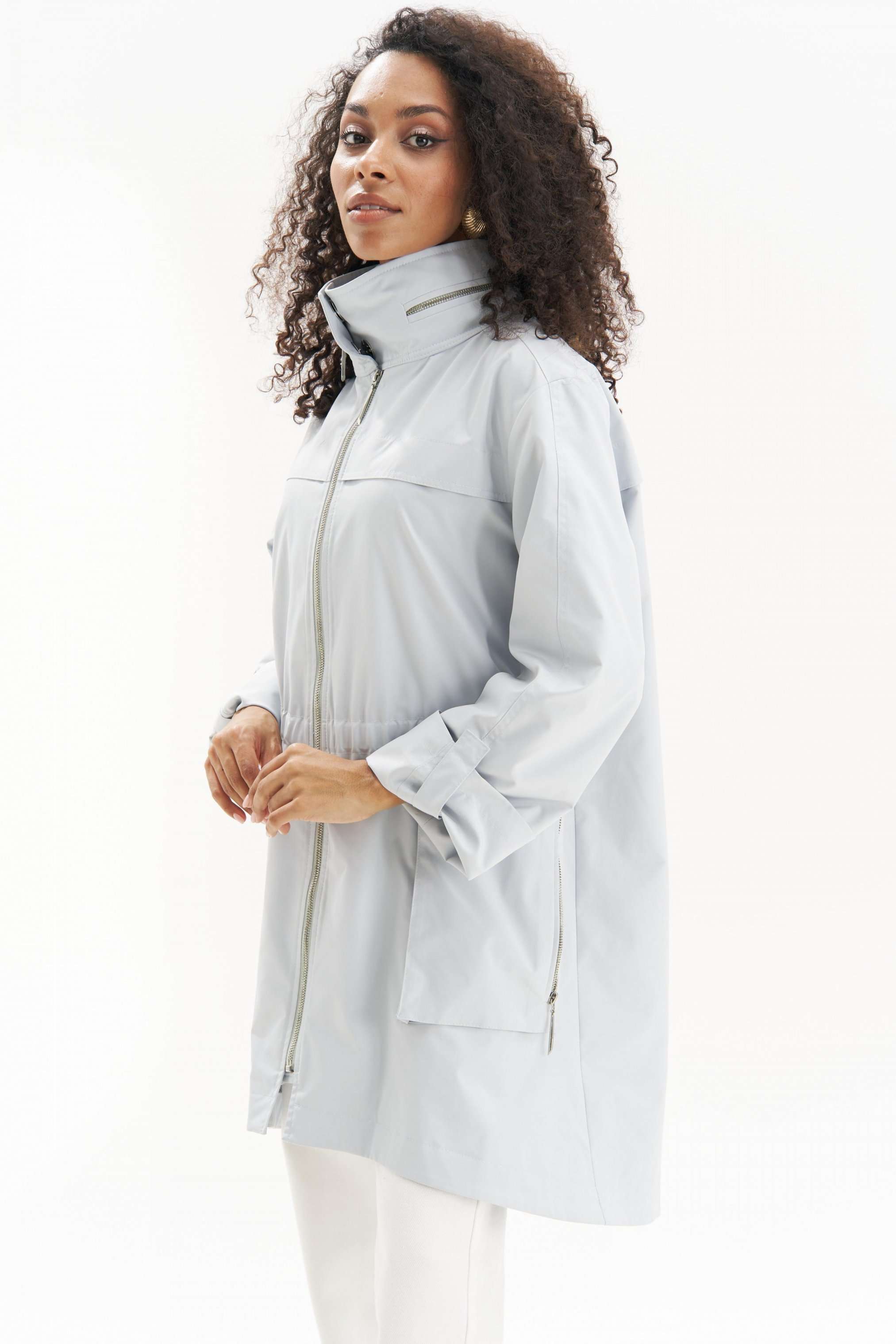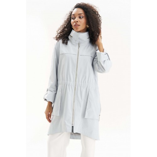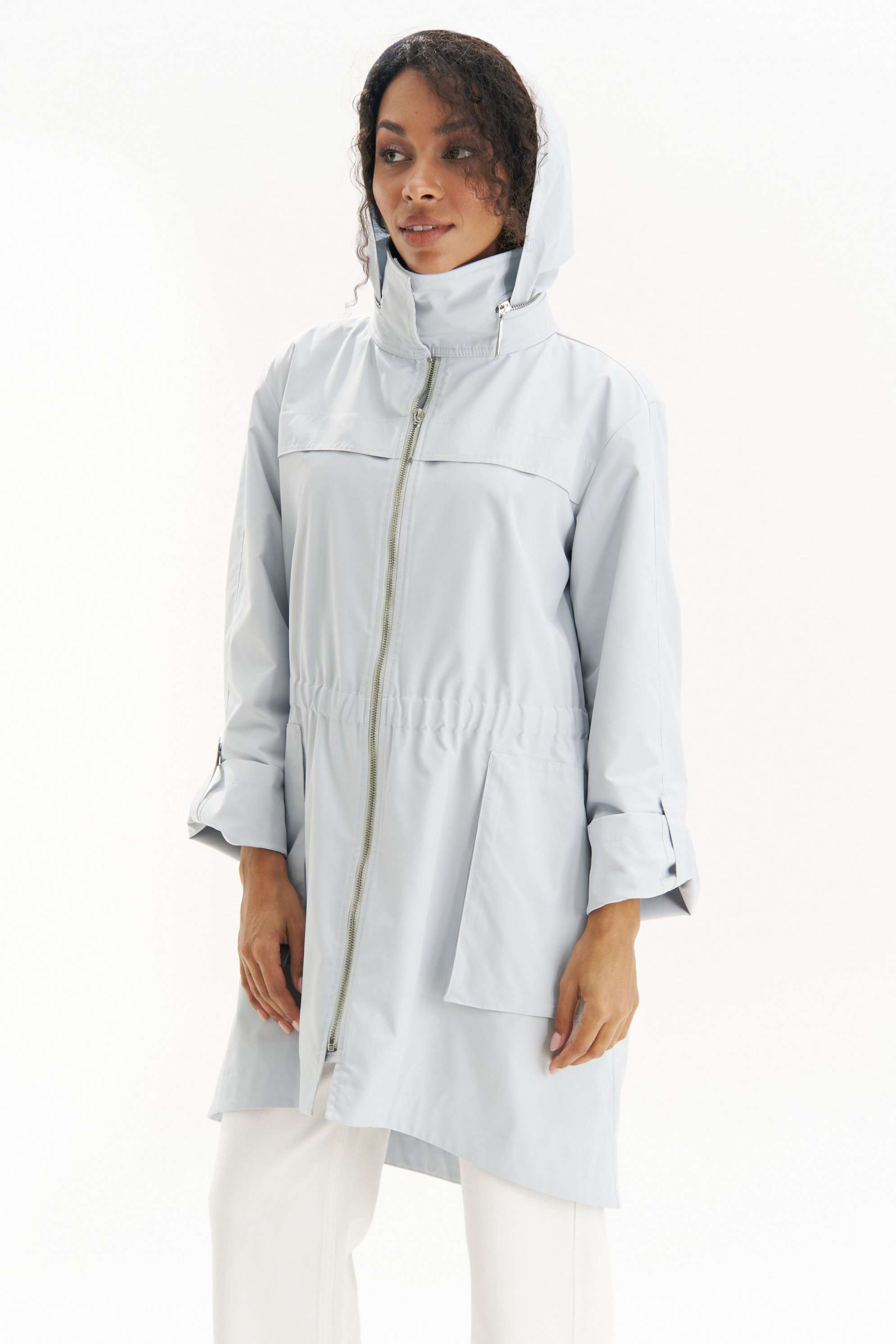 Легкая, аккуратная и очень городская ветровка женская в серо-голубом оттенке URS - тот самый вариант на весна-осень, когда хочется выглядеть собранно и чувствовать себя комфортно. Эта куртка ветровка женская от URS помогает пережить переменчивую погоду без лишней суеты и без компромиссов по стилю. Куртка женская ЮРС прямого силуэта, из плащевой ткани, на подкладке, с центральной бортовой застежкой на металлическую тесьму - «молнию» (размер и цвет фурнитуры может незначительно отличаться от фото), для повседневной носки. Перед с настрочной с изнанки кулисой с резинкой на уровне талии. На нижней части переда настрочены накладные объёмные карманы, застегивающиеся на металлическую тесьму - «молнию». На верхней части переда и спинки обработаны отлетные горизонтальные отлетные планки шириной 4,0 см. Левая часть переда с внутренней ветрозащитной планкой. Рукава втачные, двухшовные, длинные. Верхний шов рукава с пришивной кнопкой. Низ рукава может застёгиваться на хлястик с пришивной потайной кнопкой, тем самым укорачивается длина рукава до 7/8. Горловина обработана широким воротником стойкой, со смещённой относительно центра переда застёжкой на 2 потайные пришивные кнопки. Так же на верхнем воротнике обработан карман, застёгивающийся на металлическую тесьму - «молнию», в котором прячется капюшон. Низ куртки обтачной, перед незначительно короче спинки. По низу куртки прострочена отделочная строчка шириной 3,5см. 46 размер Длина по середине спинки - 92,5 см (±2,0 см), Ширина на уровне глубины проймы - 57,0 см (±1,0 см), Ширина на уровне линии талии - 52,0 см (±1,0 см), Ширина на уровне линии бедер - 61,0 см (±1,0 см), Длина рукава - 58,5 см (±1,0 см), Ширина рукава вверху - 19,5 см (±1,0 см), Ширина рукава внизу - 18,5 см (±0,5 см), Длина плеча - 12,7 см (±0,5 см). 48 размер Длина по середине спинки - 92,5 см (±2,0 см), Ширина на уровне глубины проймы - 59,0 см (±1,0 см), Ширина на уровне линии талии - 54,0 см (±1,0 см), Ширина на уровне линии бедер - 63,0 см (±1,0 см), Длина рукава - 58,5 см (±1,0 см), Ширина рукава вверху - 20,5 см (±1,0 см), Ширина рукава внизу - 19,0 см (±0,5 см), Длина плеча - 12,7 см (±0,5 см). 50 размер Длина по середине спинки - 92,5 см (±2,0 см), Ширина на уровне глубины проймы - 61,0 см (±1,0 см), Ширина на уровне линии талии - 56,0 см (±1,0 см), Ширина на уровне линии бедер - 65,0 см (±1,0 см), Длина рукава - 58,5 см (±1,0 см), Ширина рукава вверху - 21,5 см (±1,0 см), Ширина рукава внизу - 19,5 см (±0,5 см), Длина плеча - 12,7 см (±0,5 см). 52 размер Длина по середине спинки - 94,0 см (±2,0 см), Ширина на уровне глубины проймы - 63,0 см (±1,0 см), Ширина на уровне линии талии - 59,0 см (±1,0 см), Ширина на уровне линии бедер - 67,0 см (±1,0 см), Длина рукава - 59,5 см (±1,0 см), Ширина рукава вверху - 21,0 см (±1,0 см), Ширина рукава внизу - 19,0 см (±0,5 см), Длина плеча - 13,0 см (±0,5 см). 54 размер Длина по середине спинки - 94,0 см (±2,0 см), Ширина на уровне глубины проймы - 64,5 см (±1,0 см), Ширина на уровне линии талии - 61,0 см (±1,0 см), Ширина на уровне линии бедер - 69,0 см (±1,0 см), Длина рукава - 59,5 см (±1,0 см), Ширина рукава вверху - 22,0 см (±1,0 см), Ширина рукава внизу - 19,5 см (±0,5 см), Длина плеча - 13,0 см (±0,5 см). 56 размер Длина по середине спинки - 94,0 см (±2,0 см), Ширина на уровне глубины проймы - 66,0 см (±1,0 см), Ширина на уровне линии талии - 63,0 см (±1,0 см), Ширина на уровне линии бедер - 71,0 см (±1,0 см), Длина рукава - 59,5 см (±1,0 см), Ширина рукава вверху - 23,0 см (±1,0 см), Ширина рукава внизу - 20,0 см (±0,5 см), Длина плеча - 13,0 см (±0,5 см).