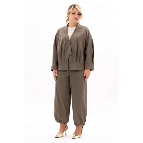 Представляем трех предметный комплект "Алладин". Лёгкий жакет-курточного типа на подкладке, майка и брюки-алладины подходит для девушек любого возраста. Костюмная ткань с хорошим стрейч-эффектом добавит комфорта при носке изделия. Жакет свободного силуэта на подкладке с воротником-стойка. Спинка без среднего шва c отрезной кокеткой, где заложены небольшие складки. По переду жакета есть застроченные складки от низа, карман в листочку, застёжка на молнию и потайной магнит. Рукав втачной, длинный, по низу есть также застроченные складки. Этот демисезонный жакет станет отличным вариантом для весенних и осенних дней, когда хочется выглядеть привлекательно и чувствовать себя комфортно и модно. Майка из вискозы с круглым вырезом горловины, спущенным плечом, коротким рукавом. Удобные и комфортные брюки-алладины-это универсальная модель для повседневной носки, отдыха, прогулок. Этот комплект- незаменимая в гардеробе вещь, которая подчеркнёт всю утончённость женской натуры и позволит всегда чувствовать себя комфортно. Брюки идут с карманами в боковых швах. Пояс в области задней части брюк дополнен эластичной тесьмой, по низу брюк есть фиксаторы и эластичный шнур для регулировки ширины. Свободный широкий силуэт ,мягкая посадка и комфортная резинка на талии обеспечит удобство и свободу движений. Элегантная повседневная модель для города. Замечательный комплект в Ваш гардероб!