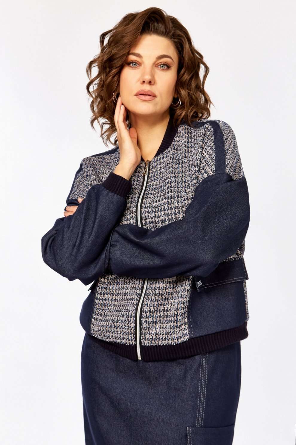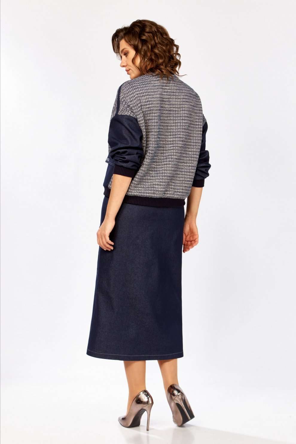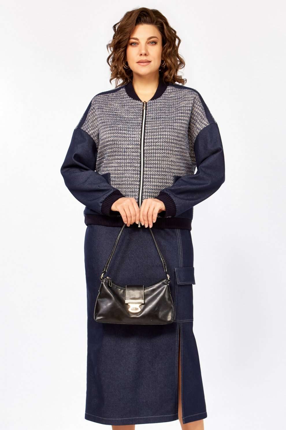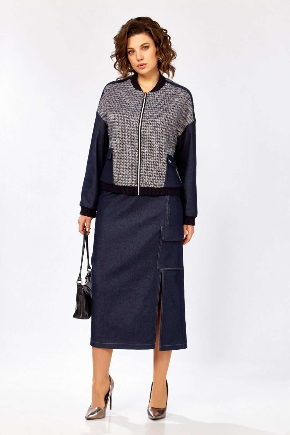 Костюм с юбкой 25103 синий Ladysecret представляет собой стильное сочетание джинсовой ткани и трикотажа, предлагая комфорт и современный дизайн. Коллекция бренда Ladysecret соединяет практичность и моду. Материал костюма состоит из хлопка с акцентом на летний сезон, идеально подходящий для повседневных прогулок. Джемпер свободного силуэта с молнией и накладными карманами дополняет образ. Прямая юбка на резинке с разрезом и декоративной отстрочкой обеспечивает комфорт и свободу движений. Синий цвет добавляет глубину и стиль, делая костюм подходящим для различных случаев.