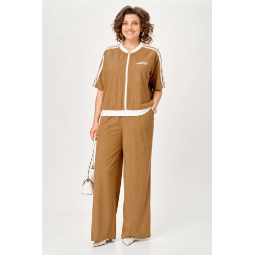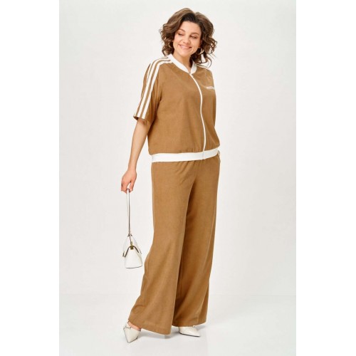 Костюм брючный 26236 карамель Ladysecret станет стильным дополнением вашего гардероба. Коллекция бренда Ladysecret воплощает молодежный дух в сочетании с комфортом. Изготовленный из легкого вельвета с добавлением вискозы, он обеспечивает мягкость и легкость движений. Свободный крой бомбера с коротким рукавом и молнией, а также брюки с эластичной лентой делают костюм идеальным для повседневного ношения в осенние дни. Практичные карманы в боковых швах добавляют функциональность. Свежий карамельный цвет и светлая отделка обеспечивают современный и модный вид. Этот костюм подходит как для городской прогулки, так и для офисных встреч, подчеркивая ваш стиль и уверенность.