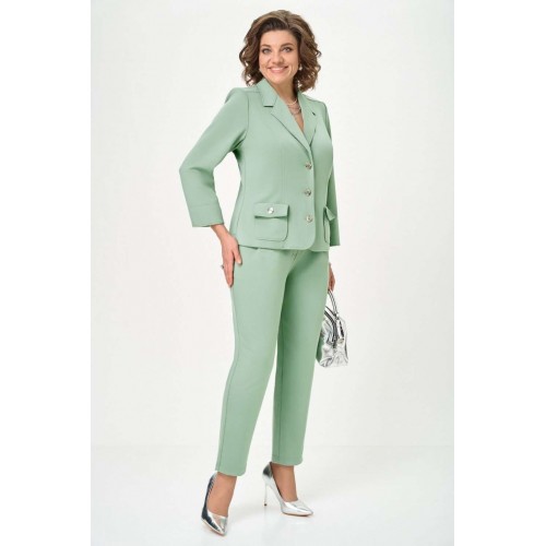 Костюм брючный 2848 оливковый идеальный выбор для любых случаев. Этот брючный костюм выполнен из смеси вискозы и полиэстера, что обеспечивает комфорт и легкость в любом сезоне. Жакет полуприлегающего силуэта с длиной 63 см и рукавом три четверти на пуговицах станет отличным выбором для офиса или прогулки. Практичные накладные карманы добавляют функциональности, а пояс на резинке в брюках средней посадки подчеркивает свободу движений. Оливковый цвет и современный стиль позволят вам выглядеть стильно как в офисной, так и в повседневной жизни. Длина жакета - 63см, длина рукава - 60см, длина брюк - 104см.
