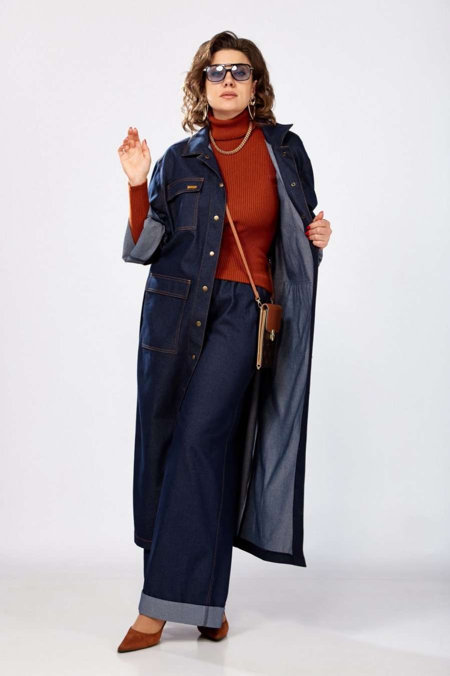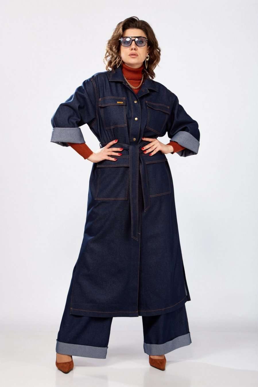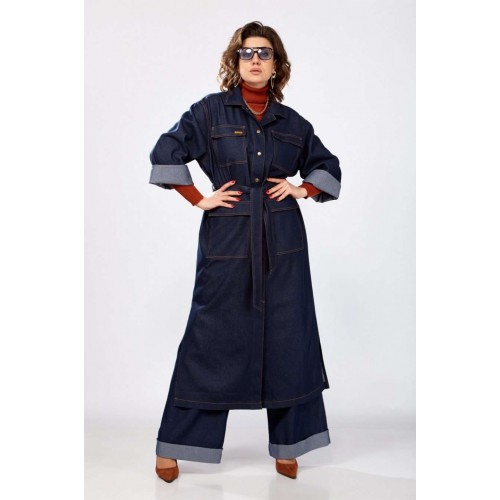 Джинсовый тренч maxi - яркий представитель стиля, который никогда не выйдет из моды. Выполнен из хлопковой джинсовой ткани средней плотности, свободного силуэта, с отложным воротником и рукавом на спущенной пройме который можно отвернуть. Отлично будет сочетаться с вещами из вашего гардероба, поверх футболки, лонгслива, джемпера, комплектуется с прямыми джинсами, брюками, юбкой, или же как отделная вещь в качестве платья. В нем легко и комфортно, можно носить куда угодно: на работу, в офис, на свидание, в ресторан, или просто на прогулку. Отличительные черты – комфортная ткань, строгие линии, в боковых швах разрезы, накладные карманы с клапаном по переду. Этот тренч подойдет для любого сезона как весна, лето, осень и даже зима. Застежка на металлические кнопки. Этот стильный и функциональный предмет базового гардероба подходит женщине с любым типом фигуры. Наше изделие универсально и идеально сочетается как с кедами и кроссовками, так и с туфлями, босоножками, сапогами.