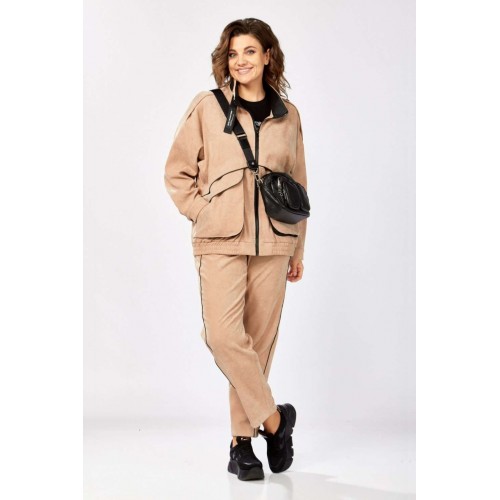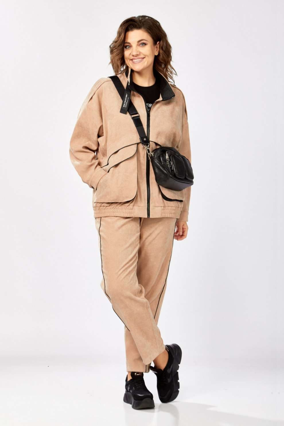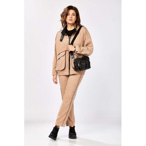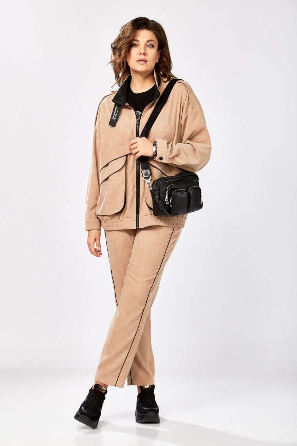Костюм брючный 25229 бежевый Ladysecret — это трендовая модель в спортивном стиле, выполненная из мягкого вельвета. Коллекция бренда Ladysecret демонстрирует сочетание стиля и комфорта, что делает костюм идеальным элементом повседневного гардероба. Куртка-ветровка имеет высокую отложную стойку с хлястиком и втачной рукав, застегивается на молнию и оснащена карманами-портфелями. Брюки свободного силуэта на эластичном поясе, без застежки и имеют боковые карманы. Бежевый цвет и контрастная отделка кант делают костюм подходящим для весенне-осеннего сезона. Длина ветровки 69 см, длина рукава от горла — 72 см, длина брюк — 101 см.