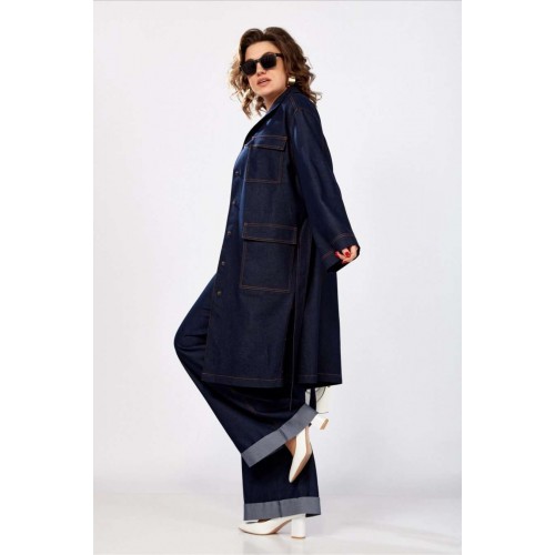 Джинсовый тренч midi - яркий представитель стиля, который никогда не выйдет из моды. Выполнен из хлопковой джинсовой ткани средней плотности, свободного силуэта, с отложным воротником и рукавом на спущенной пройме который можно отвернуть. Отлично будет сочетаться с вещами из вашего гардероба, поверх футболки, лонгслива, джемпера, комплектуется с прямыми джинсами, брюками, юбкой, или же как отделная вещь в качестве платья. В нем легко и комфортно, можно носить куда угодно: на работу, в офис, на свидание, в ресторан, или просто на прогулку. Отличительные черты – комфортная ткань, строгие линии, в боковых швах шлицы на кнопках, накладные карманы с клапаном по переду. Этот тренч подойдет для любого сезона как весна, лето, осень и даже зима. Застежка на металлические кнопки. Этот стильный и функциональный предмет базового гардероба подходит женщине с любым типом фигуры. Наше изделие универсально и идеально сочетается как с кедами и кроссовками, так и с туфлями, босоножками, сапогами.